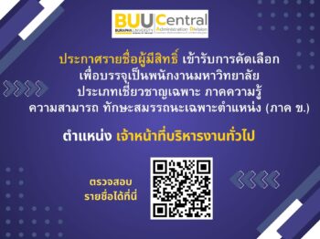 ประกาศผลการคัดเลือกบุคคล เพื่อบรรจุเป็นพนักงานมหาวิทยาลัย ประเภทเชี่ยวชาญเฉพาะ ภาคความรู้ ความสามารถ ทักษะ และสมรรถนะเฉพาะตำแหน่ง (ภาค ข.)