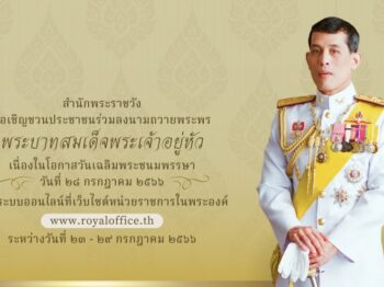สำนักพระราชวัง ขอเชิญชวนประชาชนร่วมลงนามถวายพระพร พระบา […]