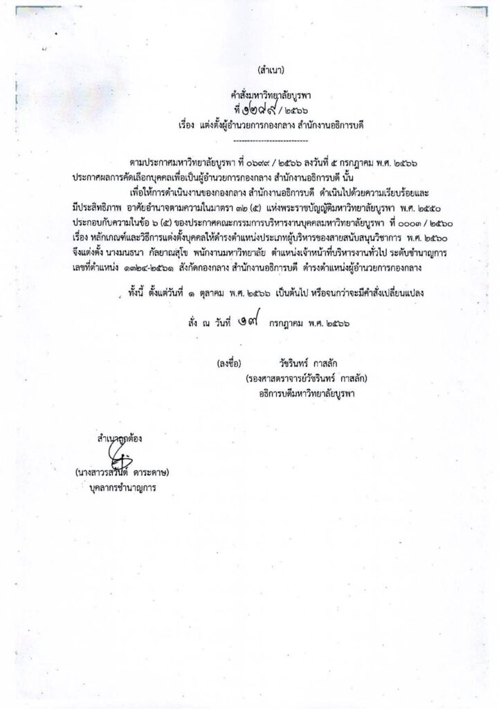 คำสั่งแต่งตั้งผู้อำนวยการกองกลาง สำนักงานอธิการบดี