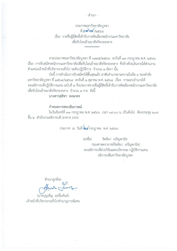รายชื่อผู้มีสิทธิ์เข้ารับการคัดเลือพนักงานมหาวิทยาลัยเพื่อรับโอนย้ายมาสังกัดกองกลาง 26 กรกฎาคม 202326 กรกฎาคม 2023ศิรินาฏข่าวประชาสัมพันธ์