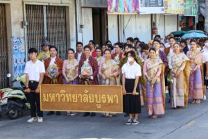 มหาวิทยาลัยบูรพาร่วมสืบสานประเพณีแห่เทียนพรรษา ประจำปี 2566 27 กรกฎาคม 202327 กรกฎาคม 2023ศิรินาฏกิจกรรม, ข่าวประชาสัมพันธ์ ผู้ปฏิบัติงานกองกลาง สำนักงานอธิการบดี มหาวิทยาลัยบูรพา เข้าร่วมประเพณีแห่เทียนพรรษา ประจำปี 2566 จัดโดย เทศบาลเมืองแสนสุขและสถานศึกษาในเขตเทศบาลเมืองแสนสุข ทั้งนี้ได้รับเกียรติจาก ผศ.ดร.เอกวิทย์ โทปุรินทร์ รองอธิการบดีฝ่ายกิจการนิสิตดร.พิมลพรรณ เลิศล้ำ ผู้ช่วยอธิการบดีฝ่ายบริหารภาพลักษณ์องค์กร และผู้รักษาการแทนหัวหน้าสำนักงานอธิการบดี มหาวิทยาลัยบูรพา พร้อมด้วย คณะผู้บริหาร บุคลากร และนิสิตมหาวิทยาลัยบูรพา ร่วมประเพณีแห่เทียนพรรษาและถวายเทียนพรรษา ประจำปี 2566 เมื่อวันพฤหัสบดีที่ 27 สิงหาคม พ.ศ. 2566 ณ วัดแจ้งเจริญดอน จังหวัดชลบุรี