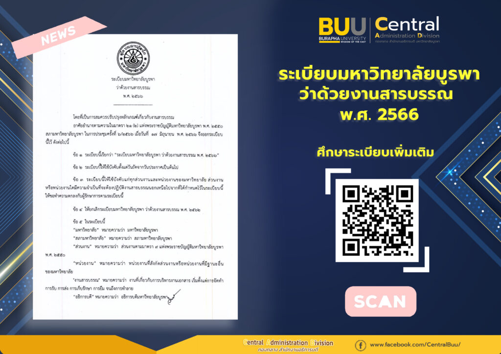 ระเบียบมหาวิทยาลัย ว่าด้วยงานสารบรรณ พ.ศ. 2566