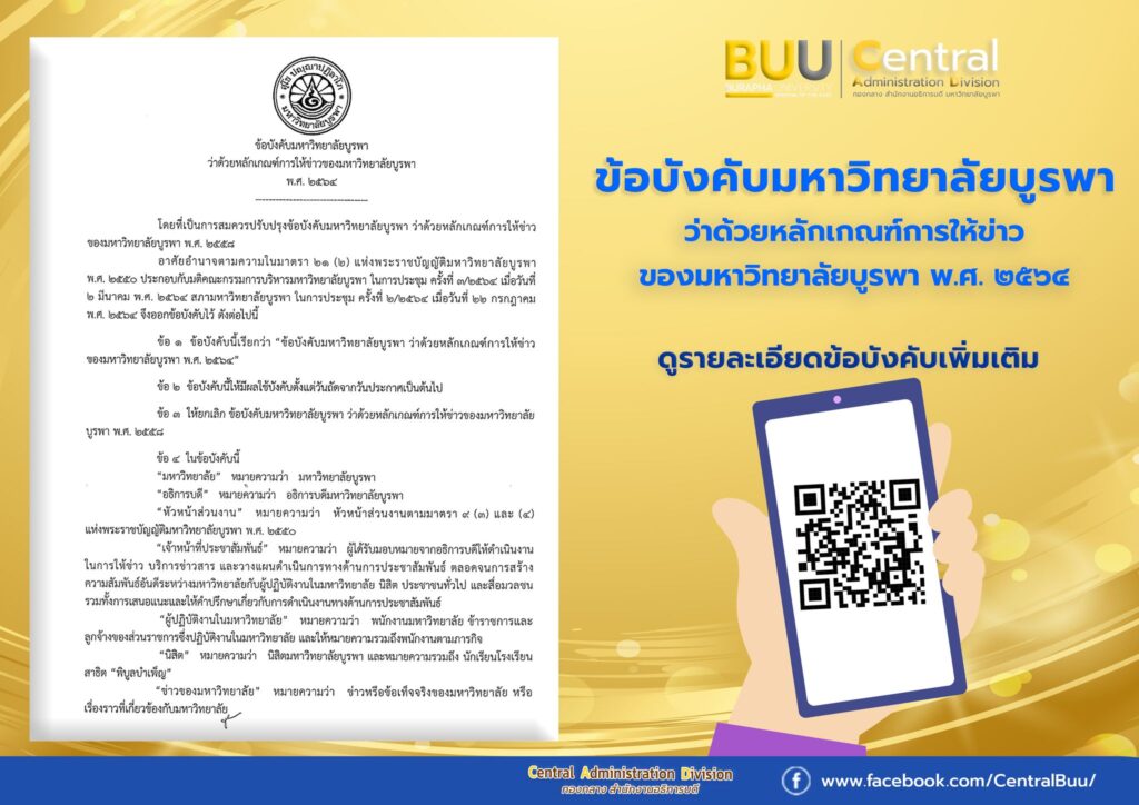 ข้อบังคับมหาวิทยาลัยบูรพา ว่าด้วยหลักเกณฑ์การให้ข่าวของมหาวิทยาลัยบูรพา 23 สิงหาคม 20237 กันยายน 2023ศิรินาฏข่าวประชาสัมพันธ์ ข้อบังคับมหาวิทยาลัยบูรพา ว่าด้วยหลักเกณฑ์การให้ข่าวของมหาวิทยาลัยบูรพา พ.ศ. ๒๕๖๔