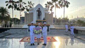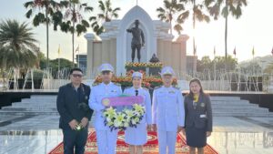 วันที่ 25 เมษายน 2567 ณ ลานพระบรมราชานุสาวรีย์สมเด็จพระนเรศวรมหาราช กรมทหารราบที่ 21 รักษาพระองค์ จ.ชลบุรี รศ.ดร.จิตติมา เจริญพานิช รองอธิการบดีฝ่ายวิจัยและนวัตกรรม นำบุคลากรมหาวิทยาลัยบูรพา เข้าร่วมพิธีวางพวงมาลาเนื่องในวันคล้ายวันสวรรคตของสมเด็จพระนเรศวรมหาราช โดยจังหวัดชลบุรีจัดขึ้นเพื่อรำลึกถึงพระมหากรุณาธิคุณและพระเกียรติคุณของพระองค์ท่าน ที่ทรงพระปรีชาสามารถ กล้าหาญ เด็ดเดี่ยว ขับไล่อริราชศัตรูตลอดพระชนม์ชีพ เพื่อสร้างความเป็นเอกราชให้แก่ชาติไทยและเป็นวีรกรรมที่เลื่องลือปรากฏอยู่ในประวัติศาสตร์ตราบจนทุกวันนี้