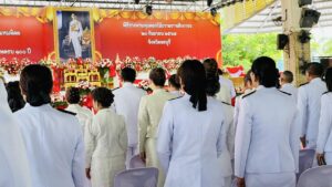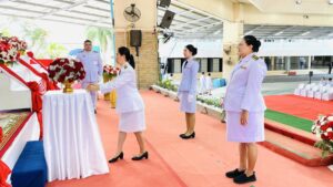 เมื่อวันที่ 20 กันยายน 2568 เวลา 09.15 น. นางบุญเพ็ญ ฤทธิ์มหันต์ หัวหน้างานการประชุมและพิธีการ พร้อมด้วยผู้ปฏิบัติงาน งานการประชุมและพิธีการ กองกลาง สำนักงานอธิการบดี มหาวิทยาลัยบูรพา เข้าร่วมพิธีวางพานพุ่มดอกไม้ ถวายราชสักการะ เนื่องในโอกาสวันคล้ายวันพระบรมราชสมภพครบ 100 ปี พระบาทสมเด็จพระปรเมนทรมหาอนันทมหิดล พระอัฐมรามาธิบดินทร โดยมีนายธวัชชัย ศรีทอง ผู้ว่าราชการจังหวัดชลบุรี เป็นประธานพิธีวางการพุ่มดอกไม้ถวายราชสักการะ พระบาทสมเด็จพระปรเมนทรมหาอนันทมหิดล พระอัฐมรามาธิบดินทร เนื่องในโอกาสวันคล้ายวันพระบรมราชสมภพครบ 100 ปี ที่โรงเรียนชลกันยานุกูล ต.บางปลาสร้อย อ.เมือง จ.ชลบุรี