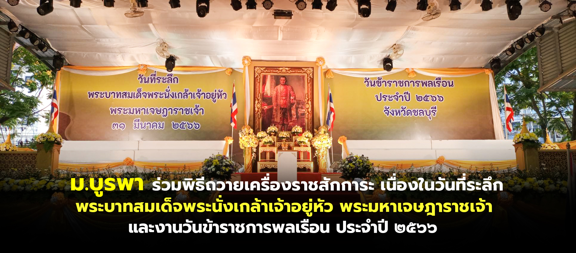 มหาวิทยาลัยบูรพา นำโดย ภญ.ดร.ณัฏฐิณี ธีรกุลกิตติพงศ์ คณบดีคณะเภสัชศาสตร์ พร้อมด้วย คณาจารย์และผู้ปฏิบัติงาน มหาวิทยาลัยบูรพา ร่วมพิธีถวายเครื่องราชสักการะ เนื่องในวันที่ระลึกพระบาทสมเด็จพระนั่งเกล้าเจ้าอยู่หัว พระมหาเจษฎาราชเจ้า พร้อมทั้งงานวันข้าราชการพลเรือน ประจำปี ๒๕๖๖ เมื่อวันศุกร์ที่ ๓๑ มีนาคม พ.ศ. ๒๕๖๖ เวลา ๐๗.๐๐ น. ณ อาคารอเนกประสงค์วิทยาการ โรงเรียนชลกันยานุกูล อำเภอเมืองชลบุรี จังหวัดชลบุรี เพื่อเป็นการน้อมรำลึกถึงพระมหากรุณาธิคุณ และแสดงความกตัญญูกตเวทีต่อองค์พระบาทสมเด็จพระนั่งเกล้าเจ้าอยู่หัว พระมหาเจษฎาราชเจ้า